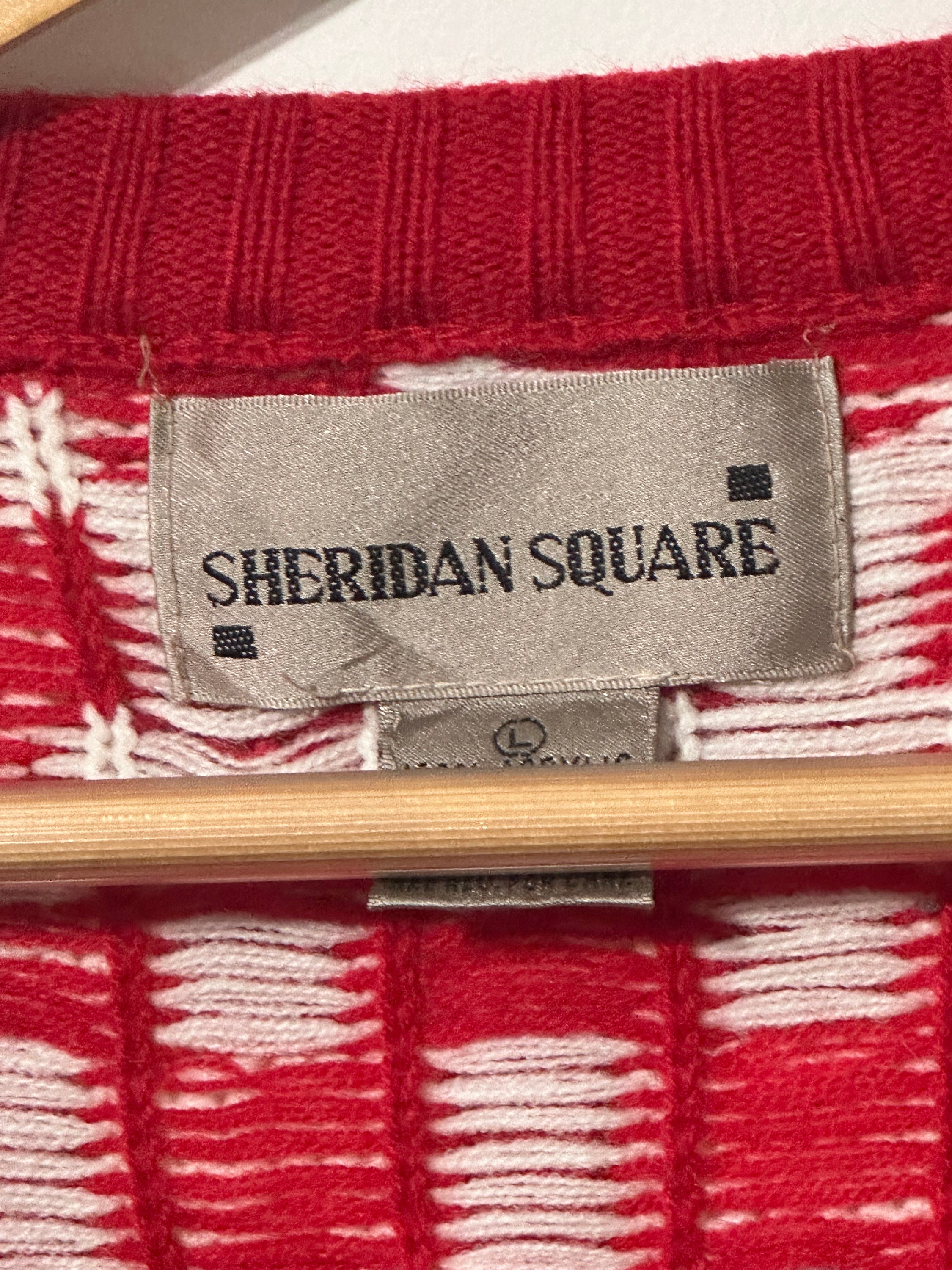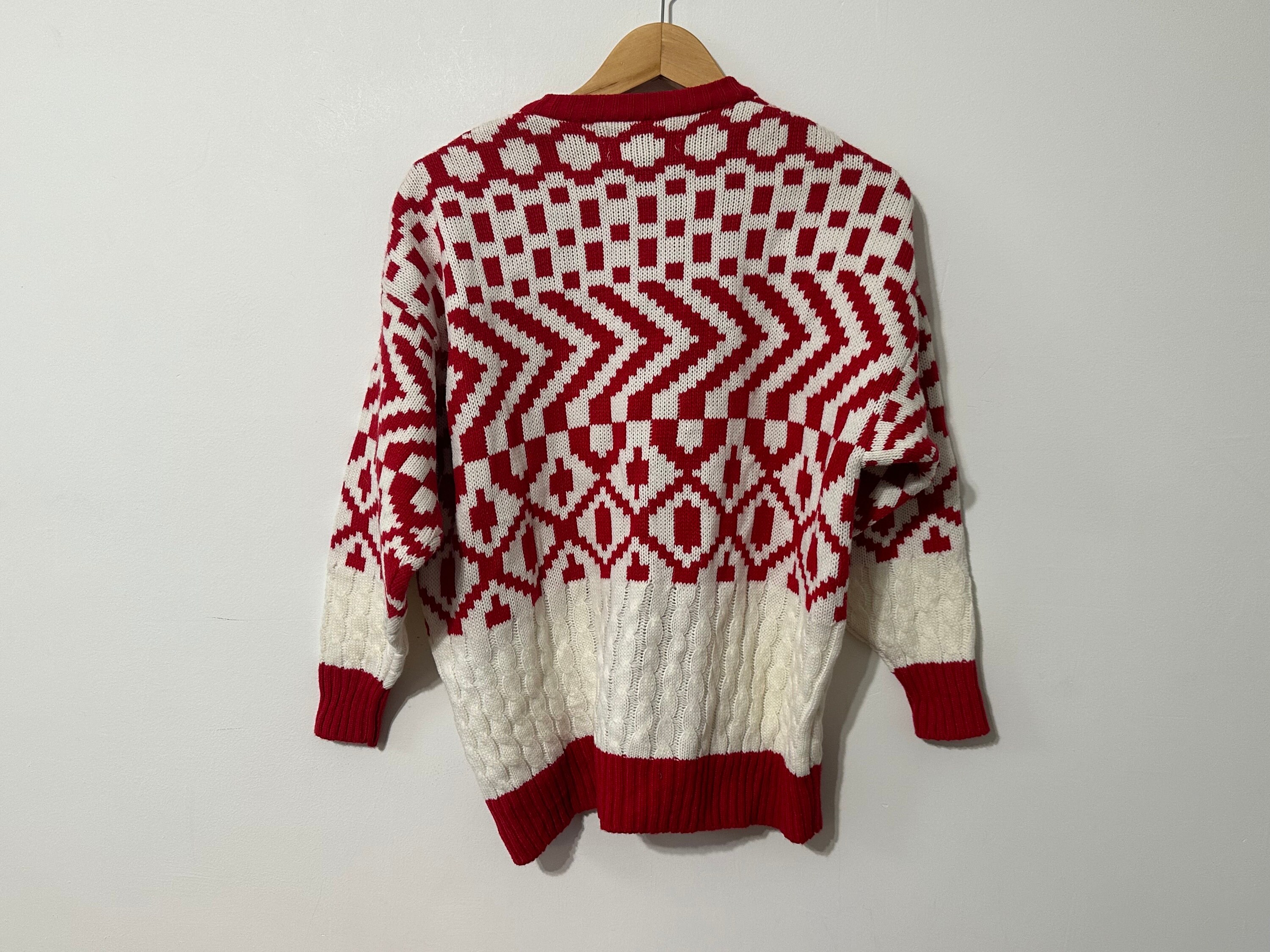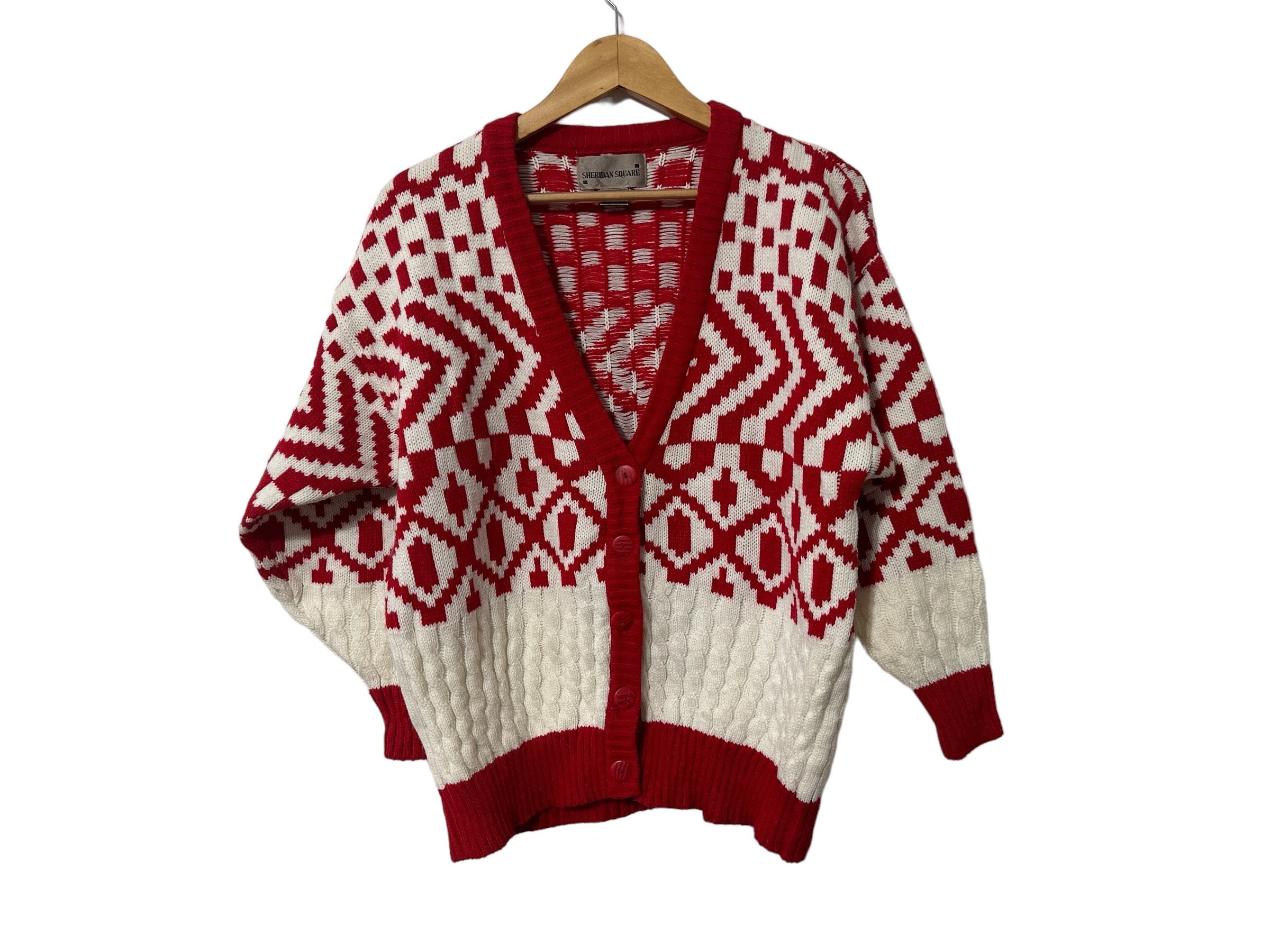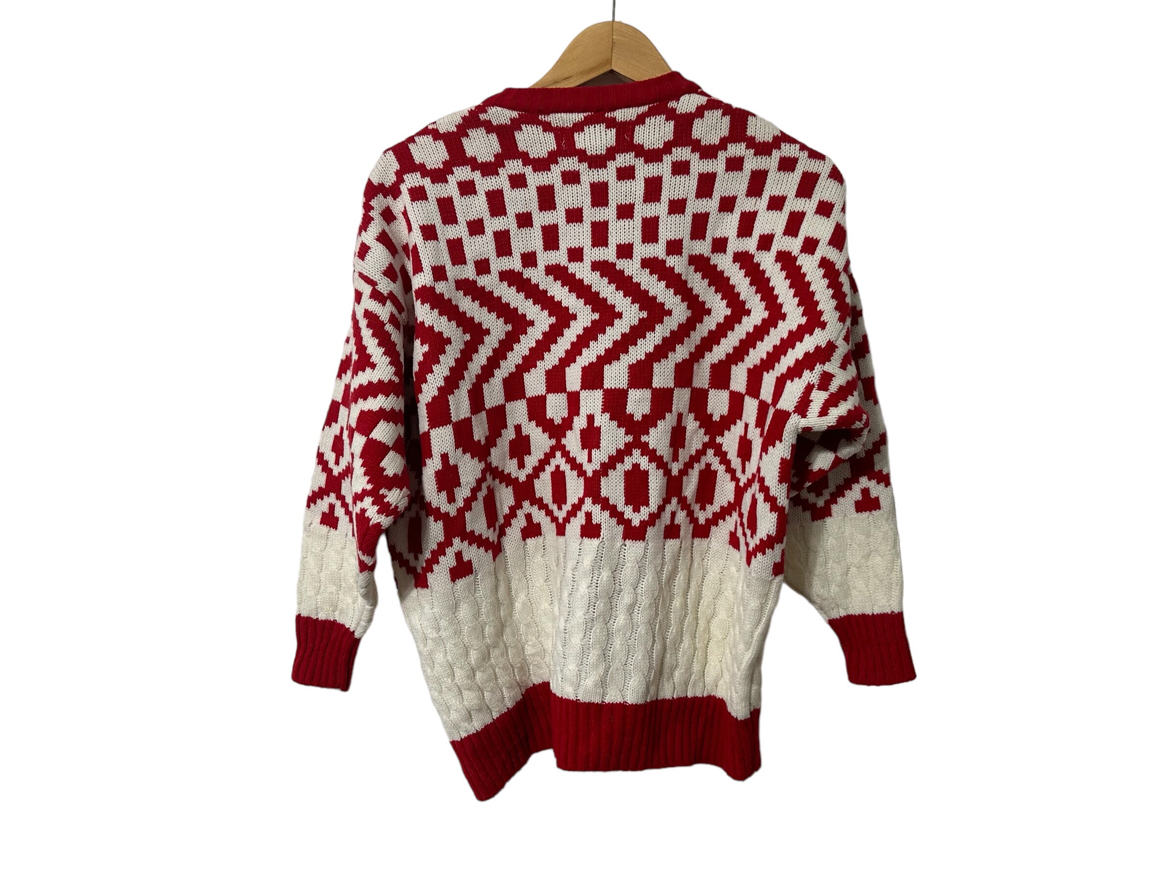 Vintage Red White Acrylic Cardigan Sweater Women Size Large