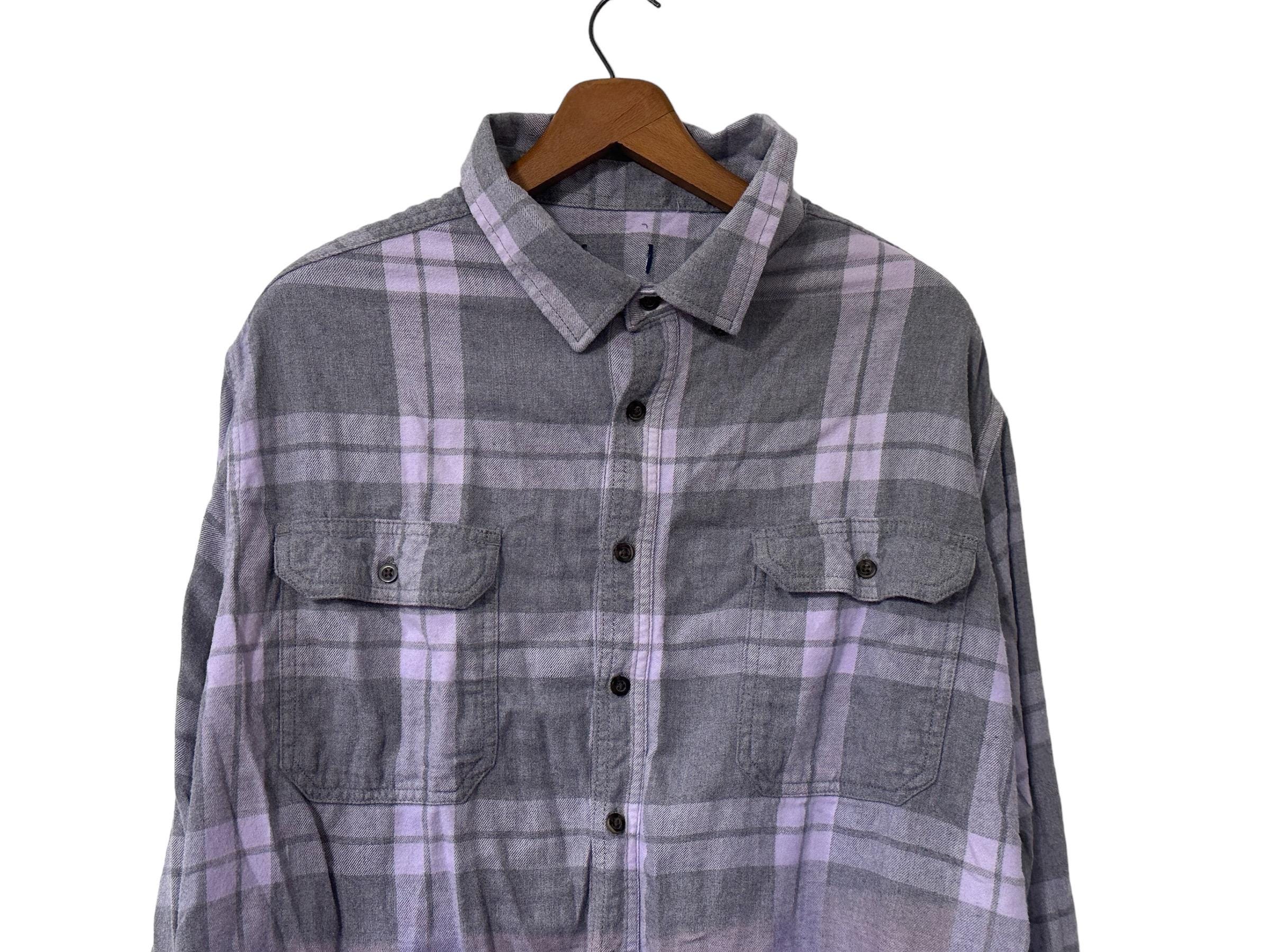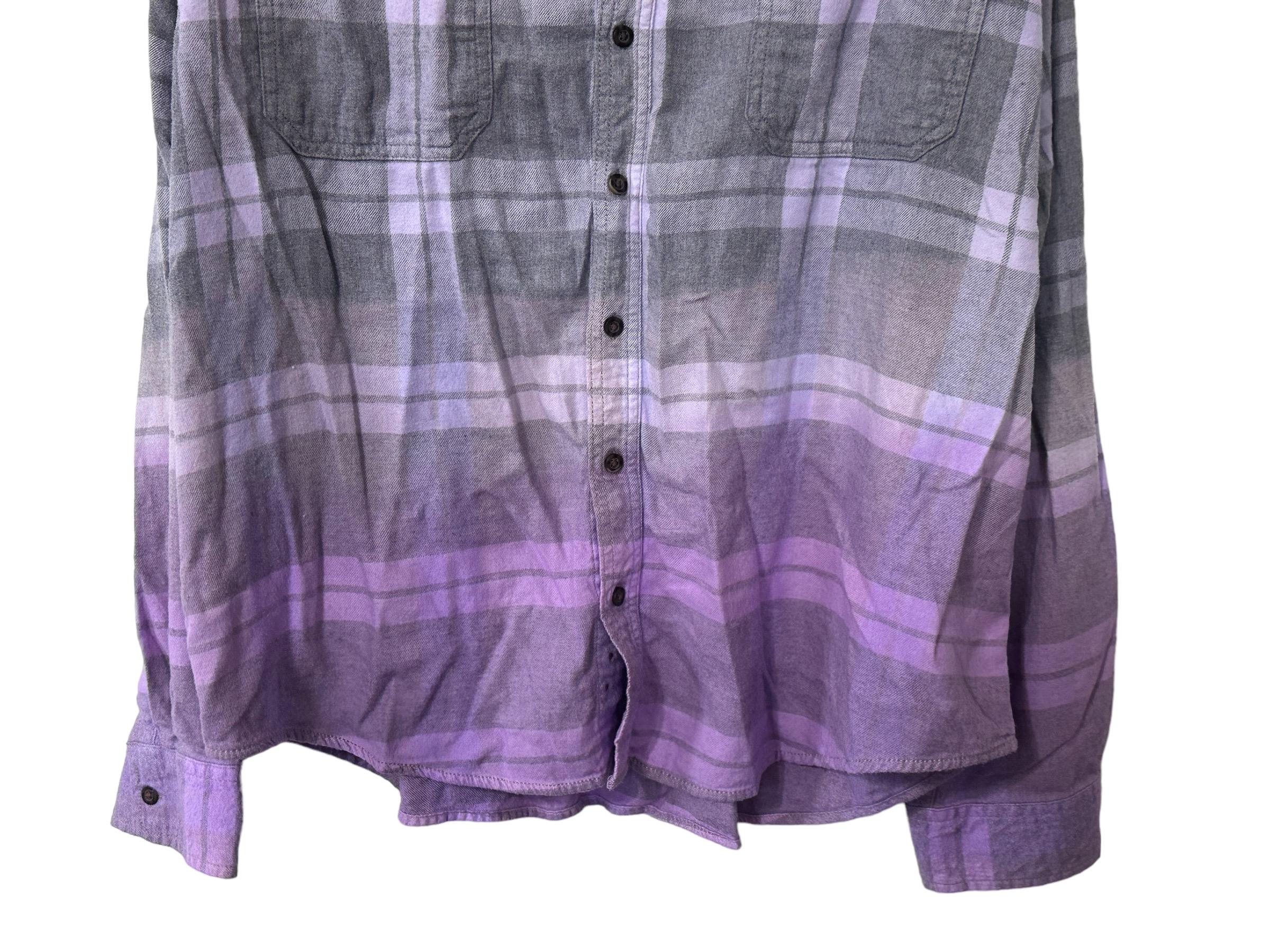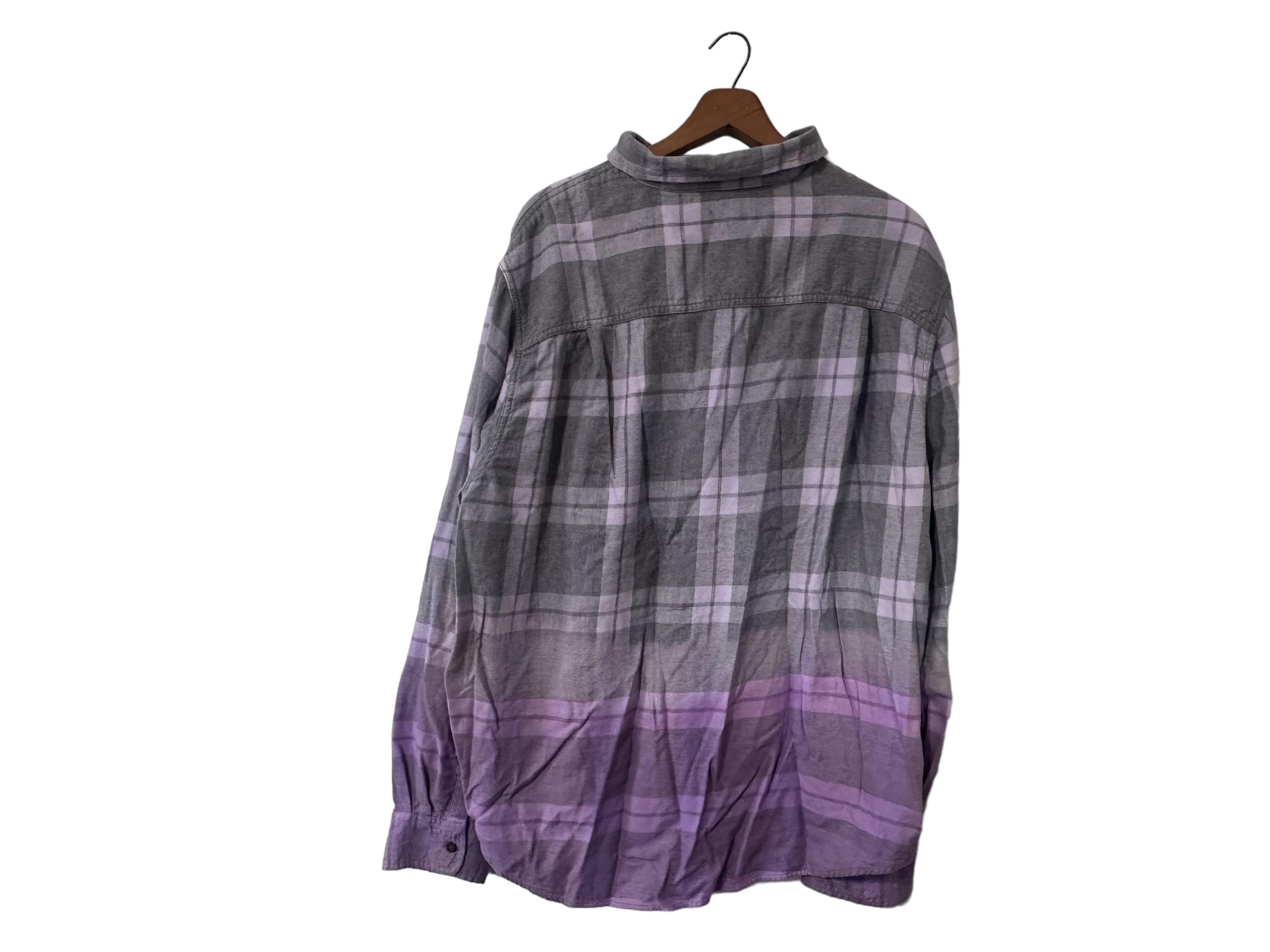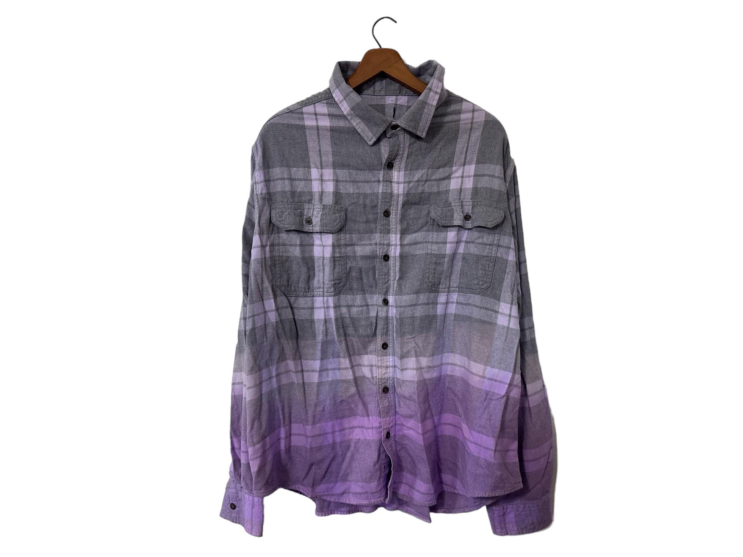 Purple Dip Dyed Flannel Shirt Long Sleeved Soft Comfy Plaid Gray Flannel XXL