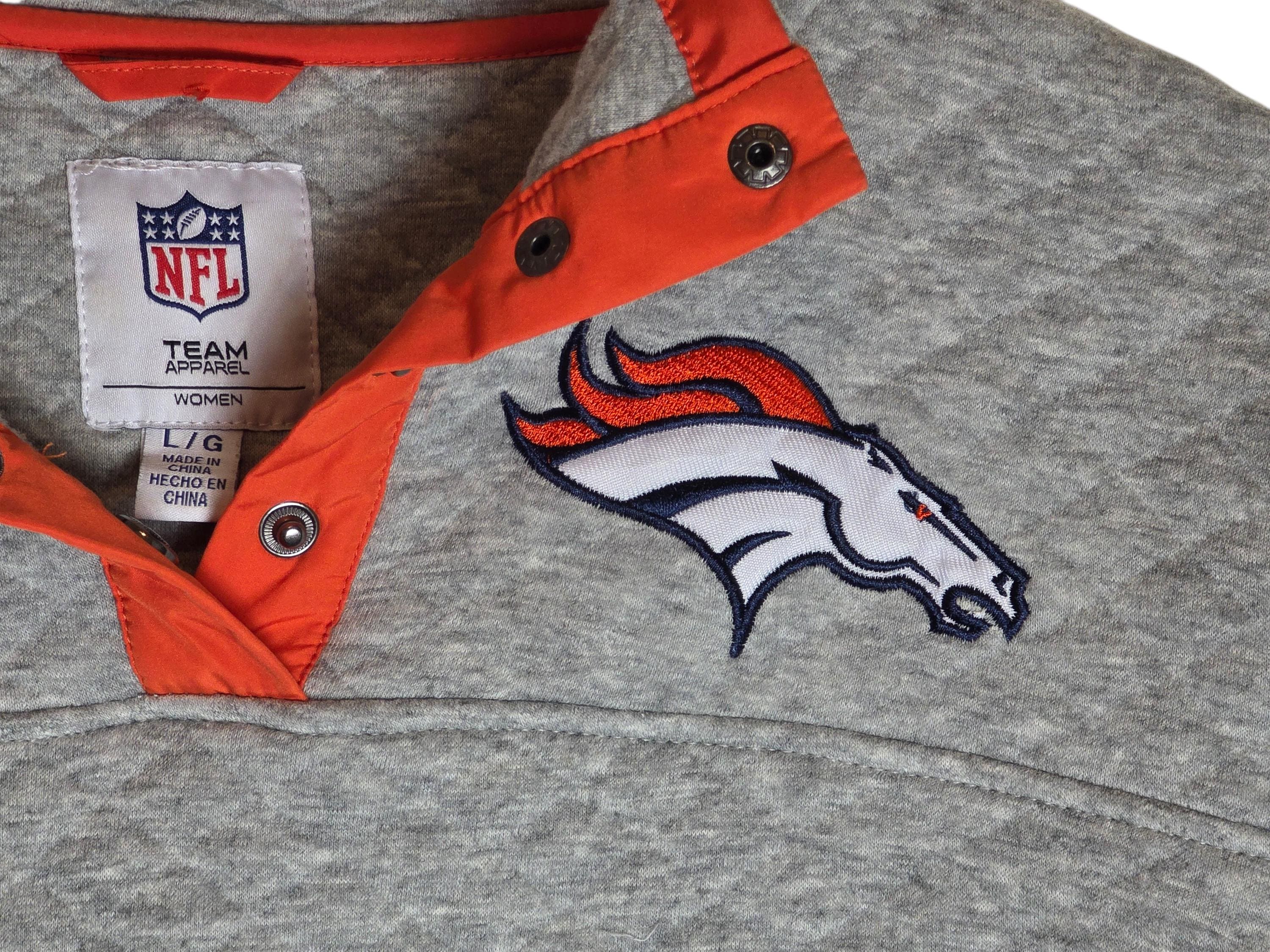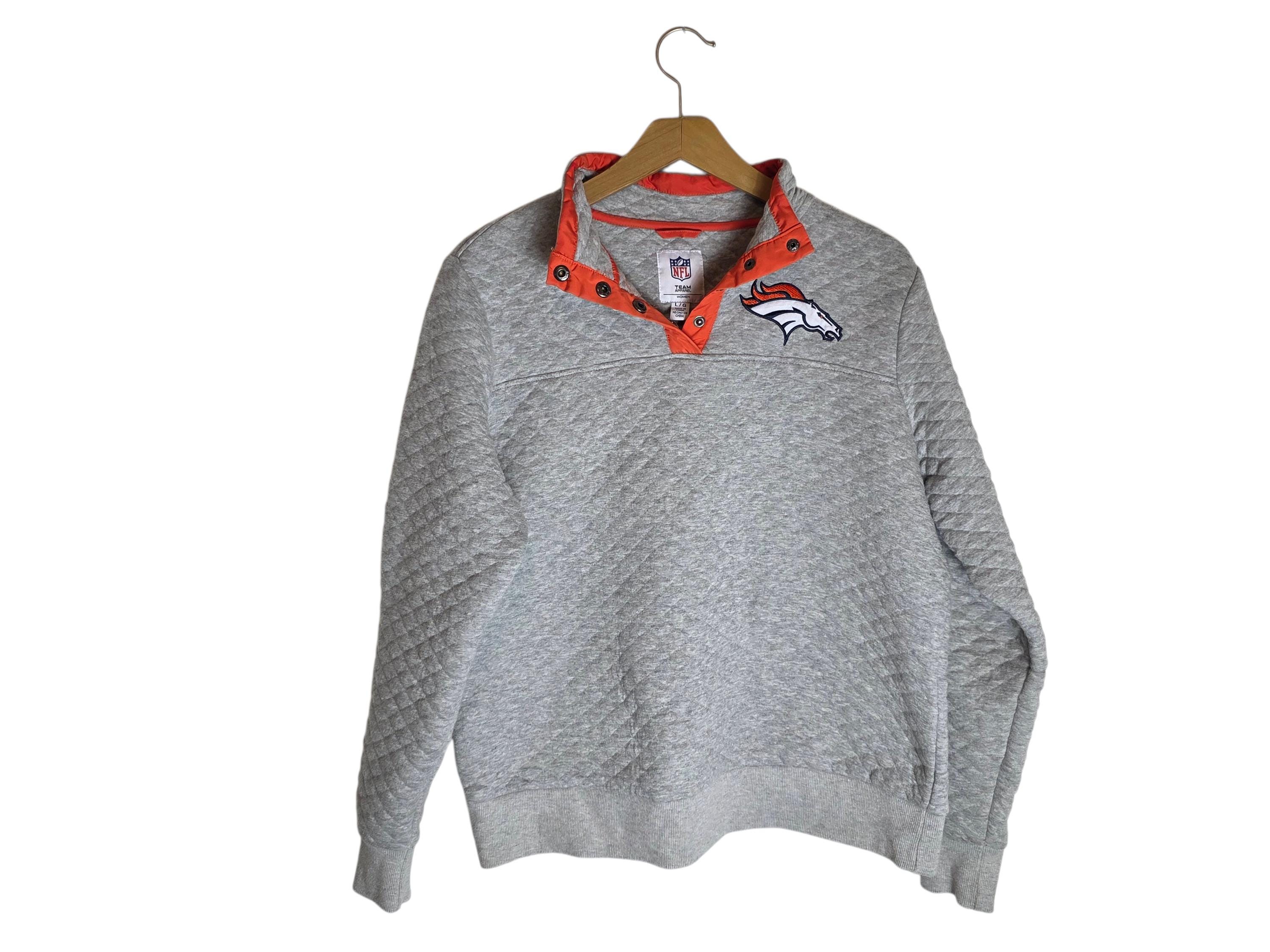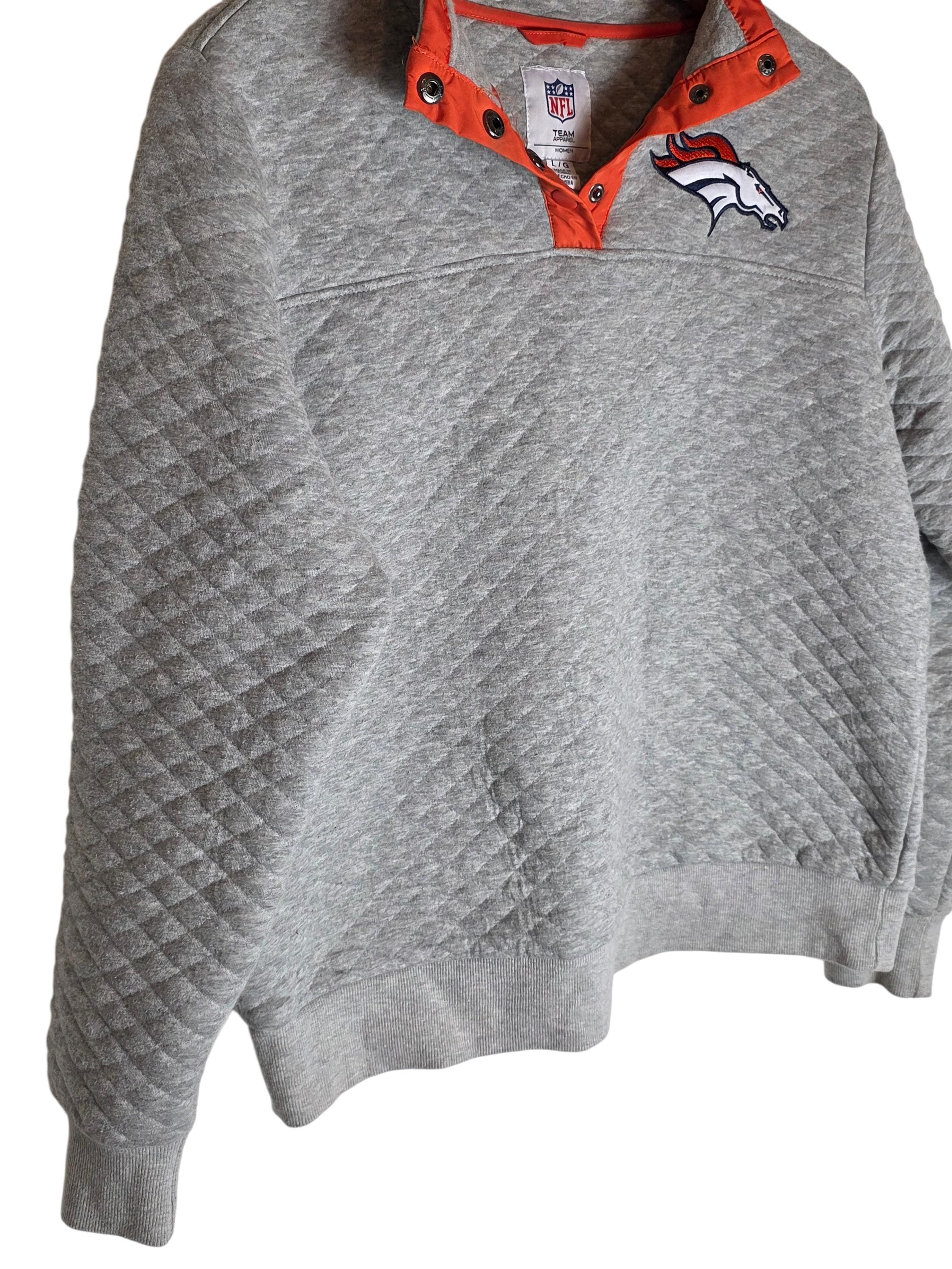 Denver Broncos Football Quilted Pullover Sweatshirt Soft Gray Womens Large