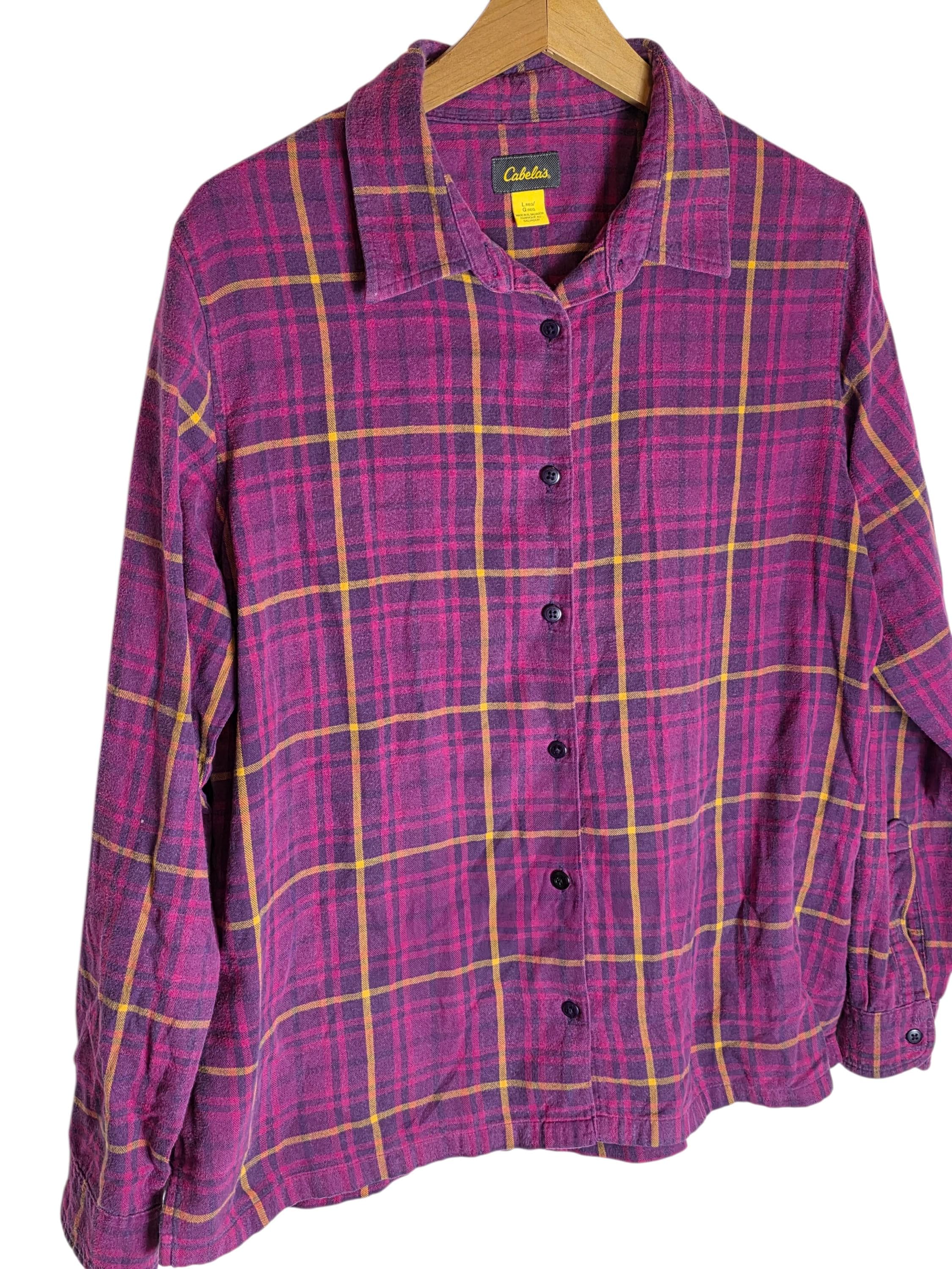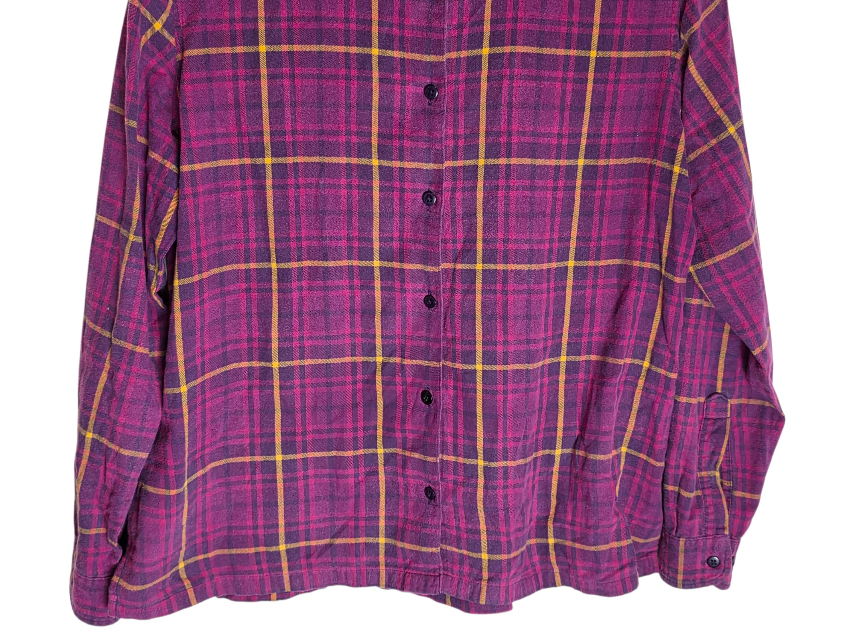 Purple Magenta Pink Women's Cotton Plaid Flannel Shirt