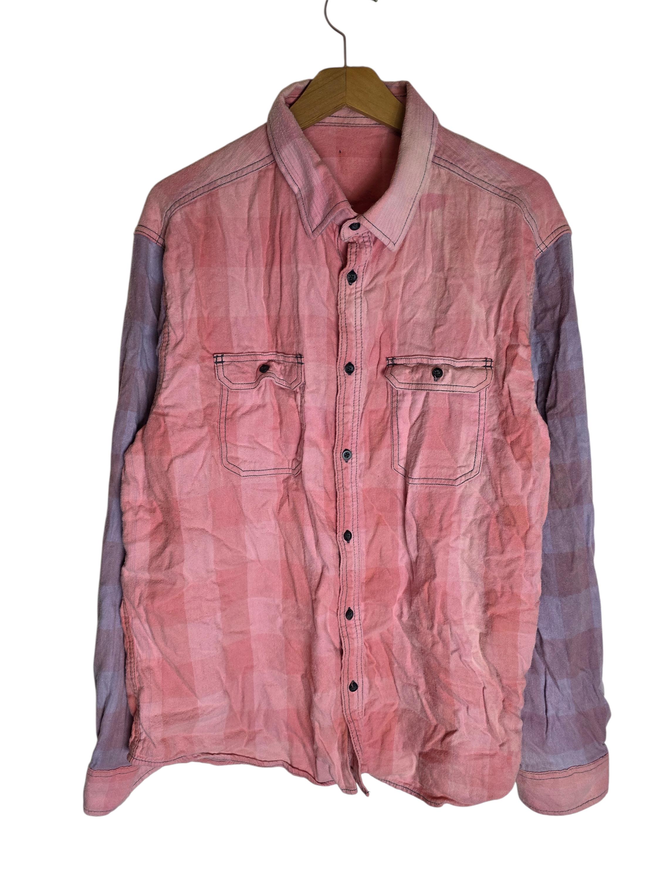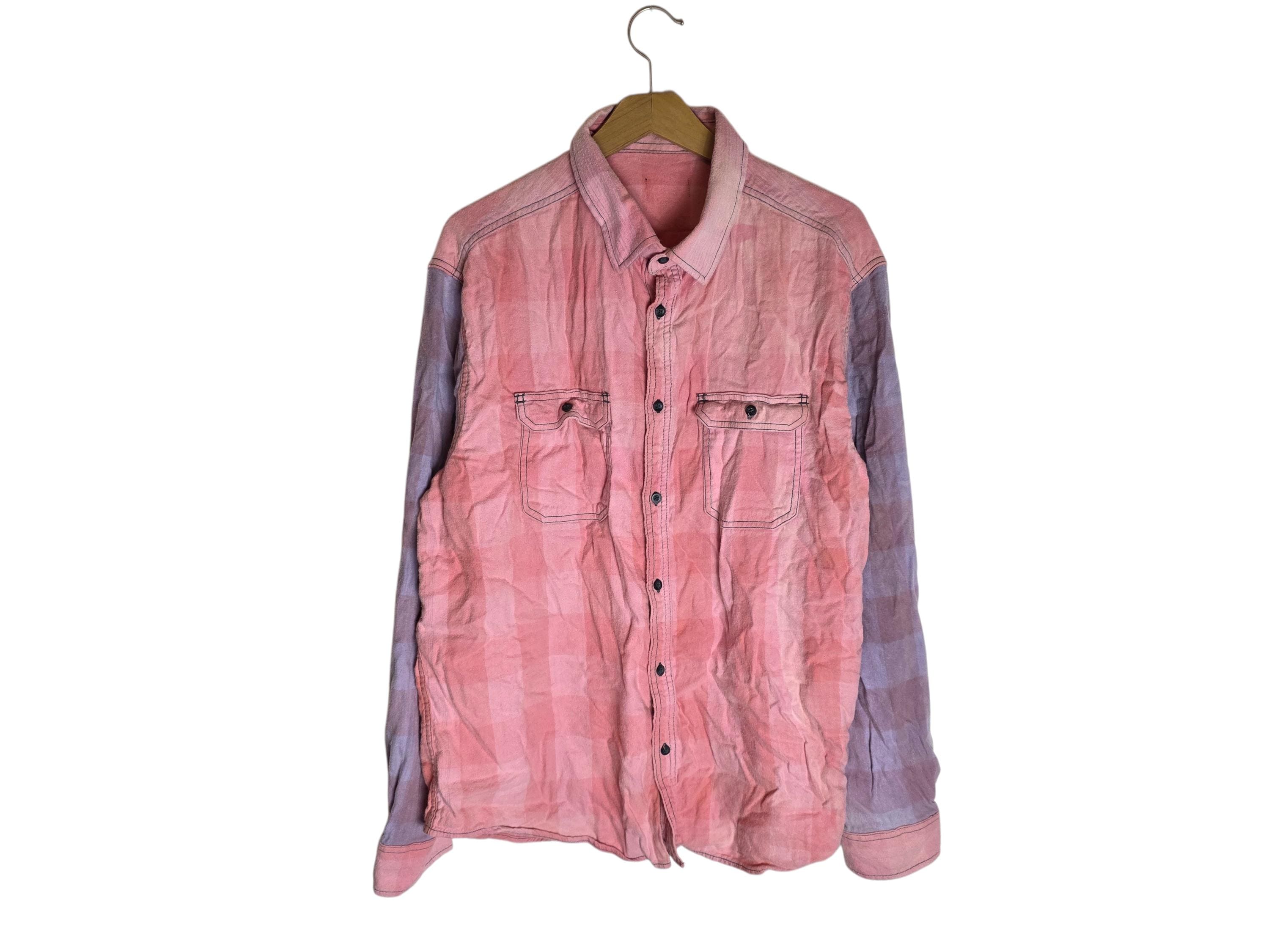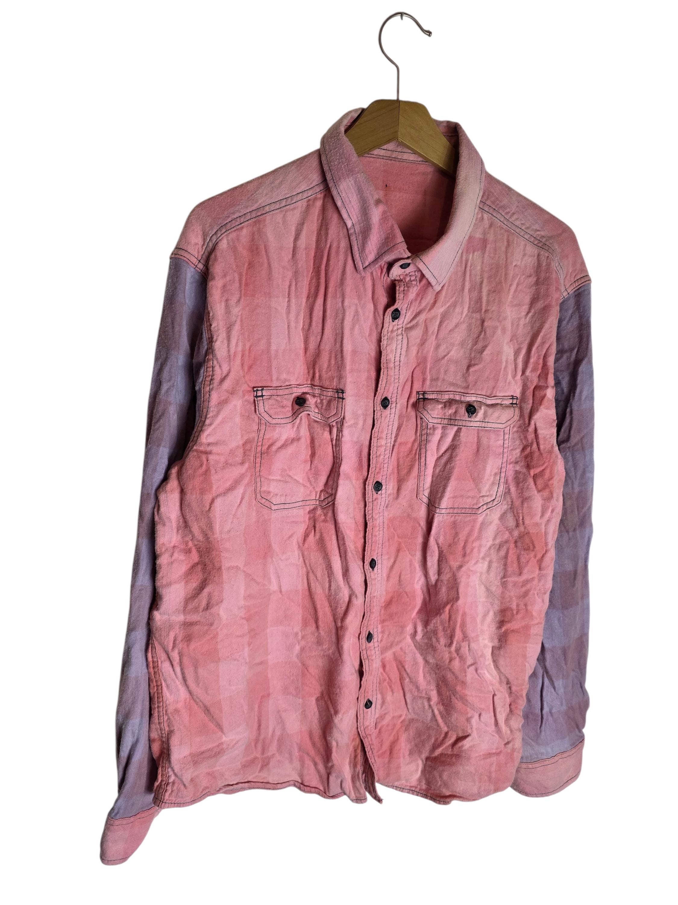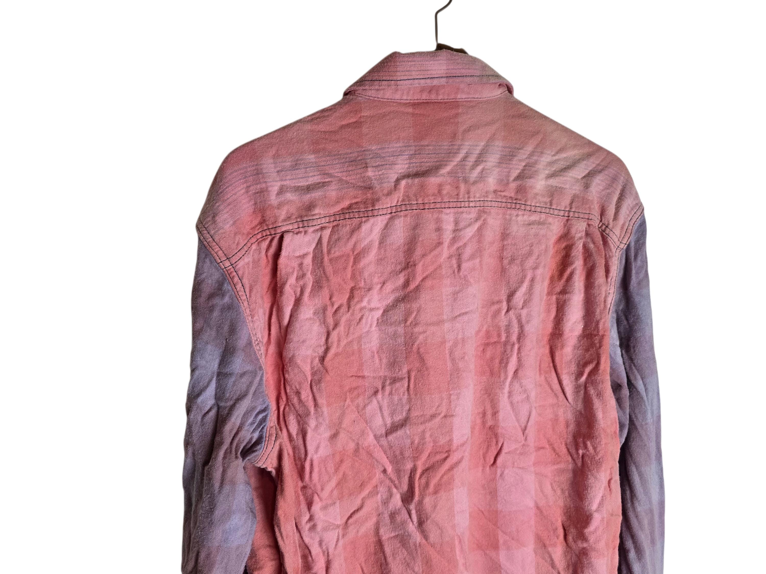 Sun Bleached Pink & Purple Mix Matched Plaid Flannel Shirt Buffalo Checkered Size XL