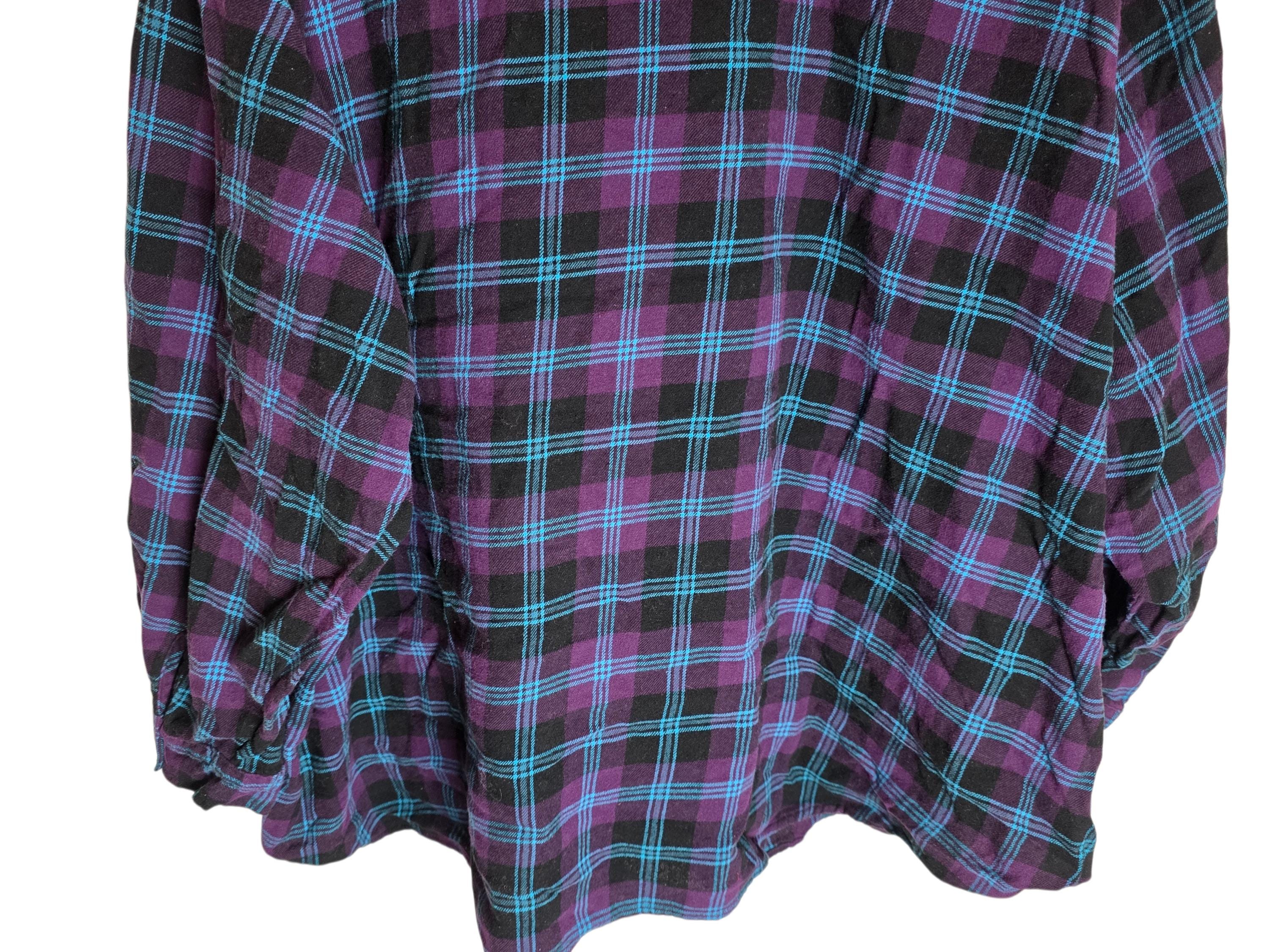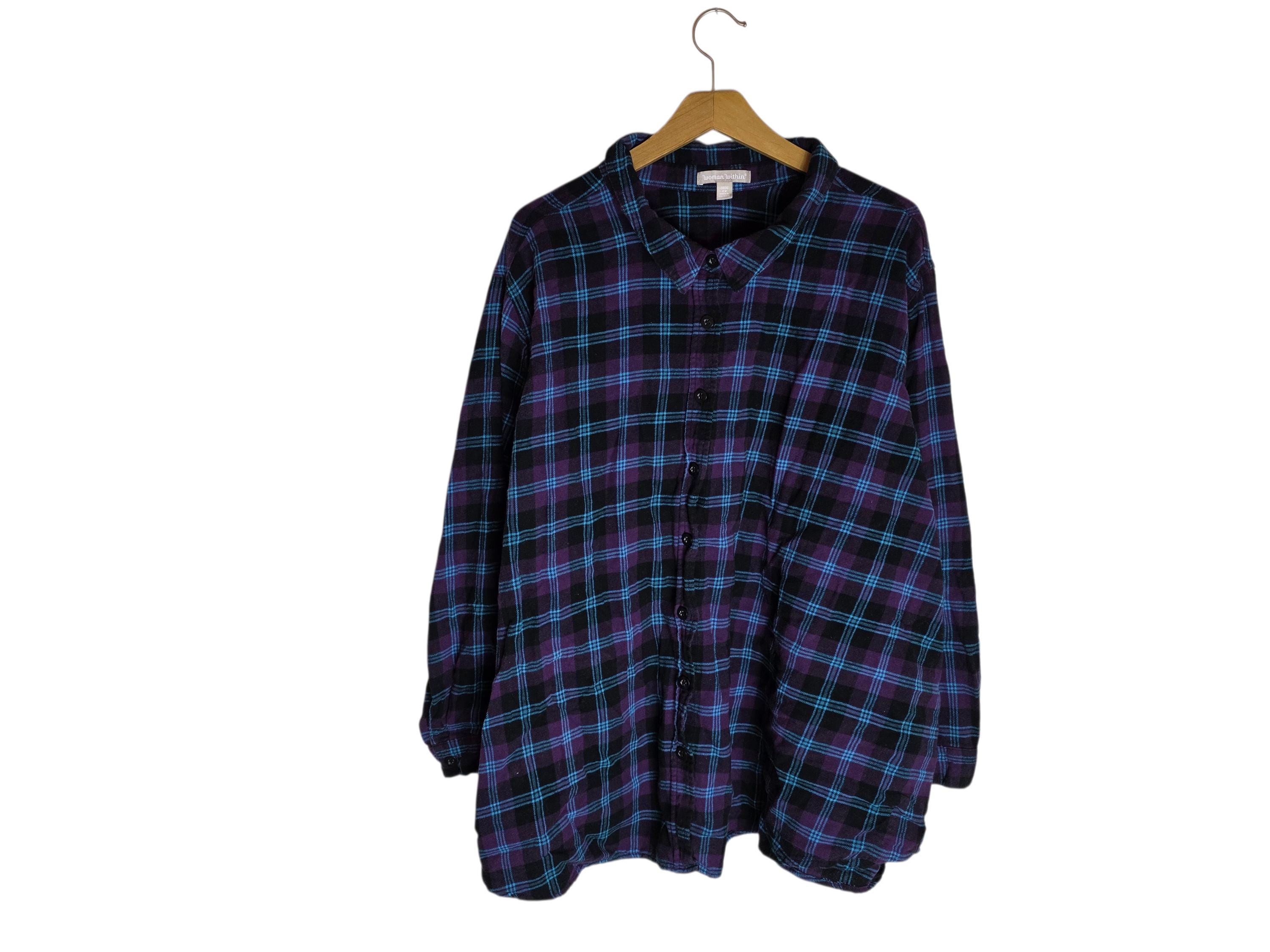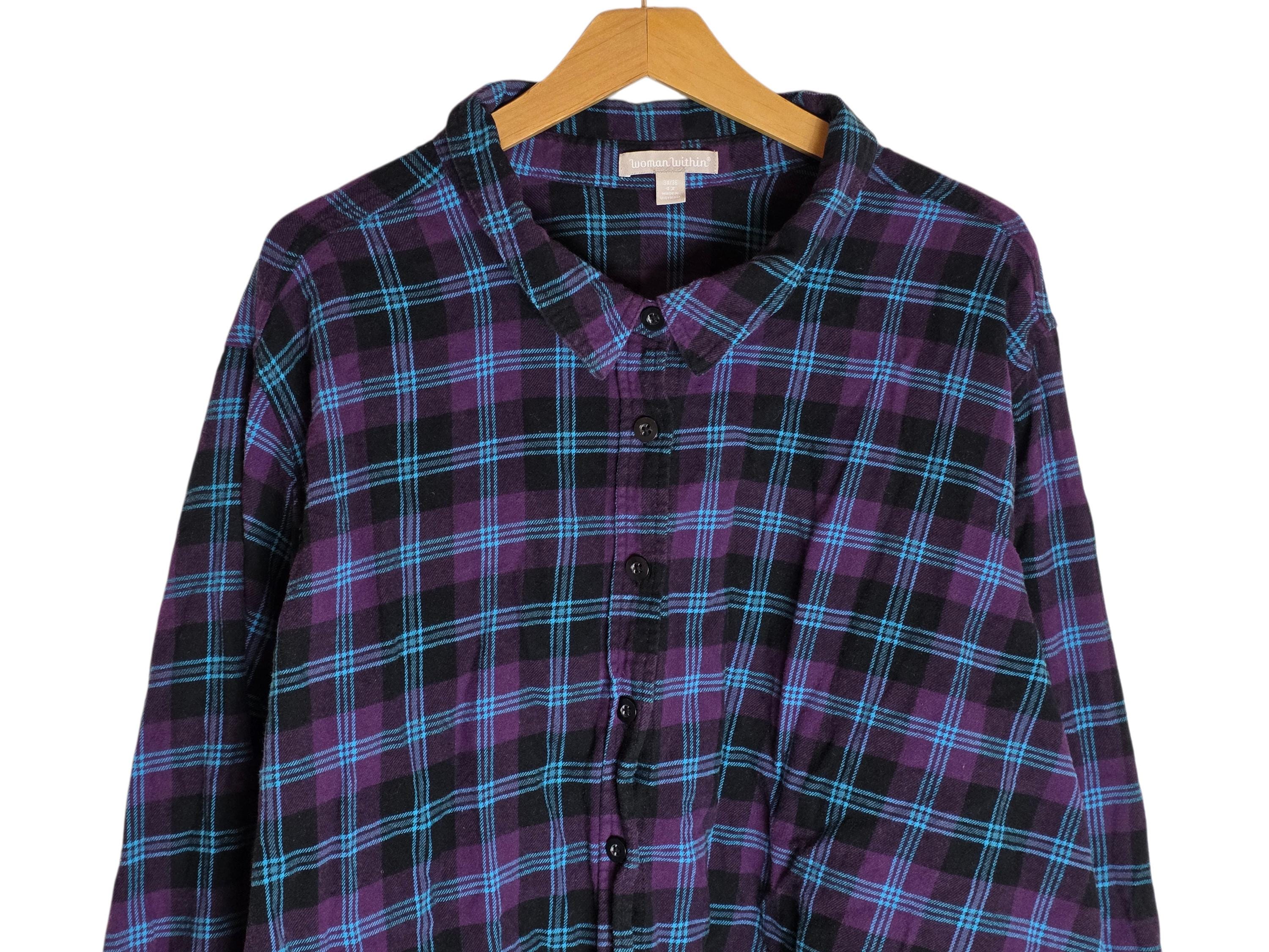 Women's Plus-Sized Purple Flannel Shirt 4X Long Sleeve Cotton Button Down Flannel