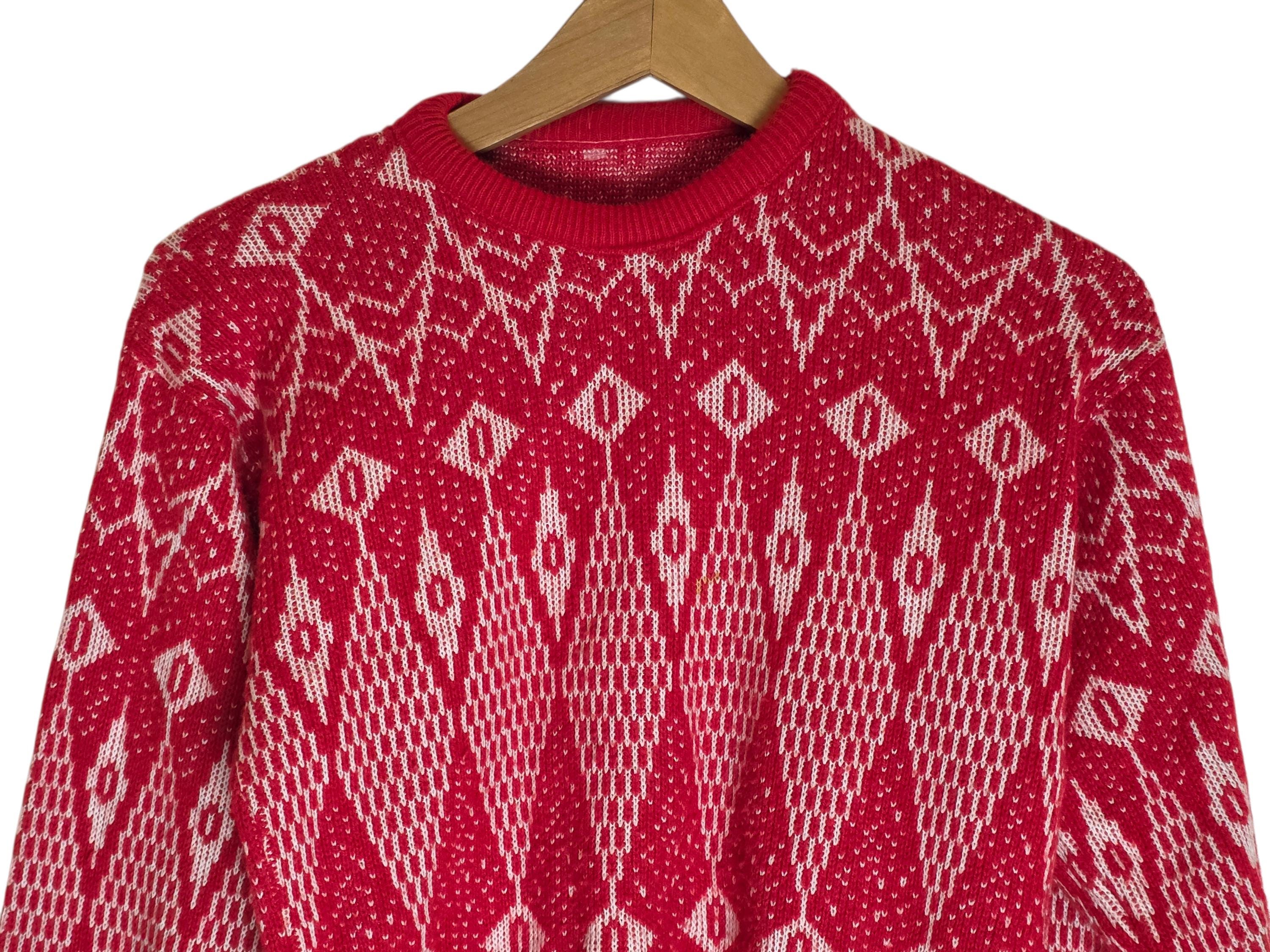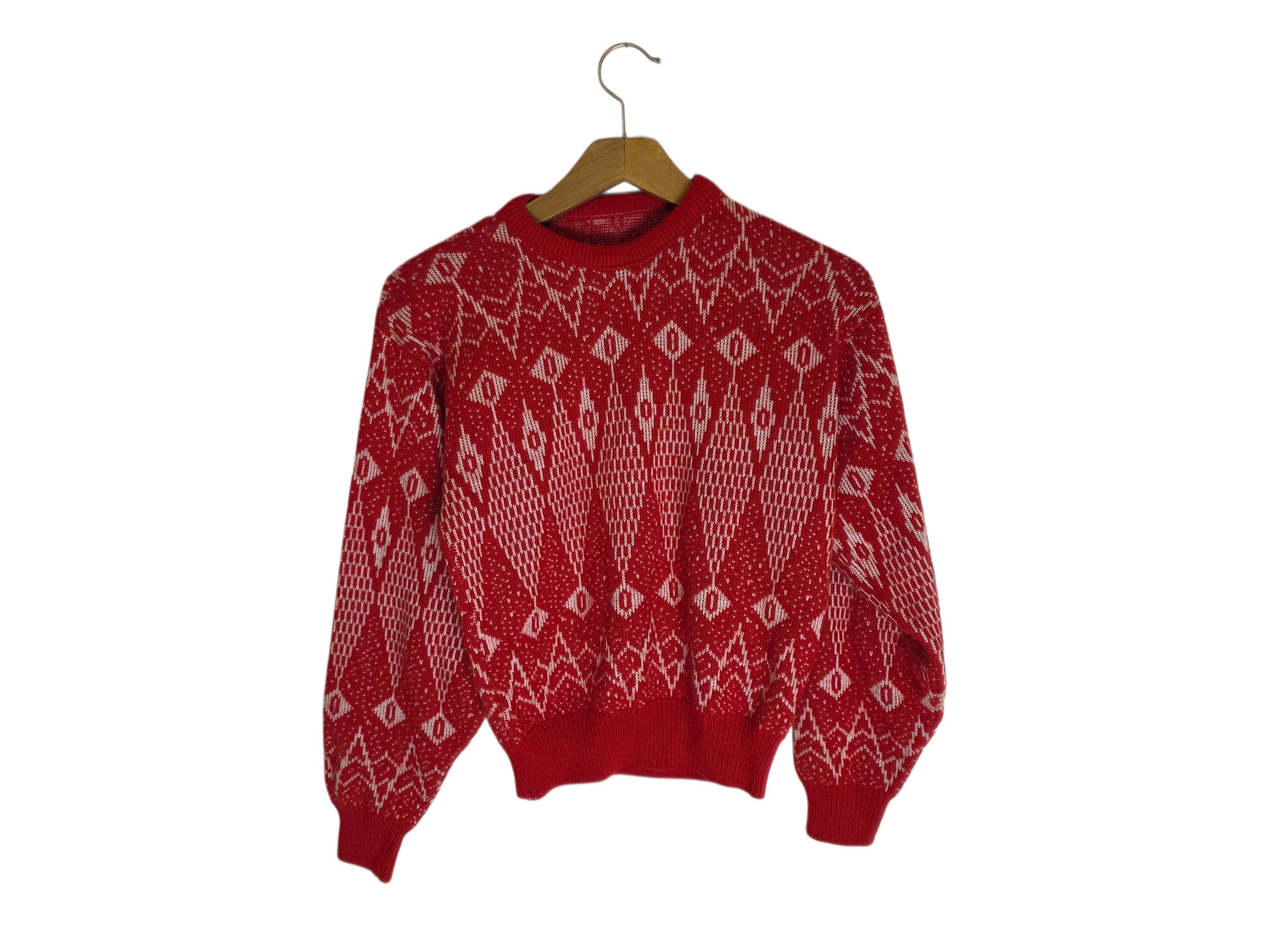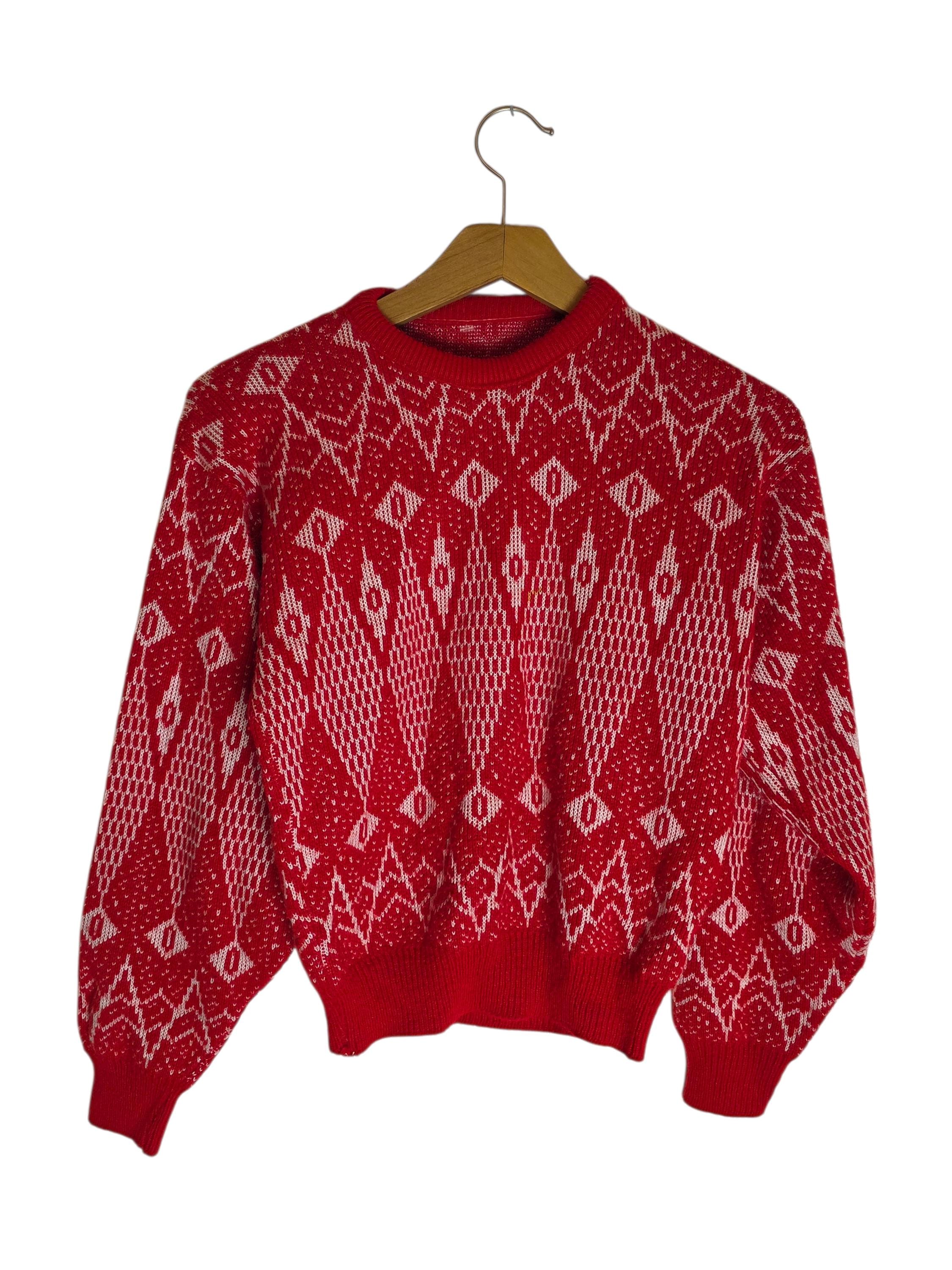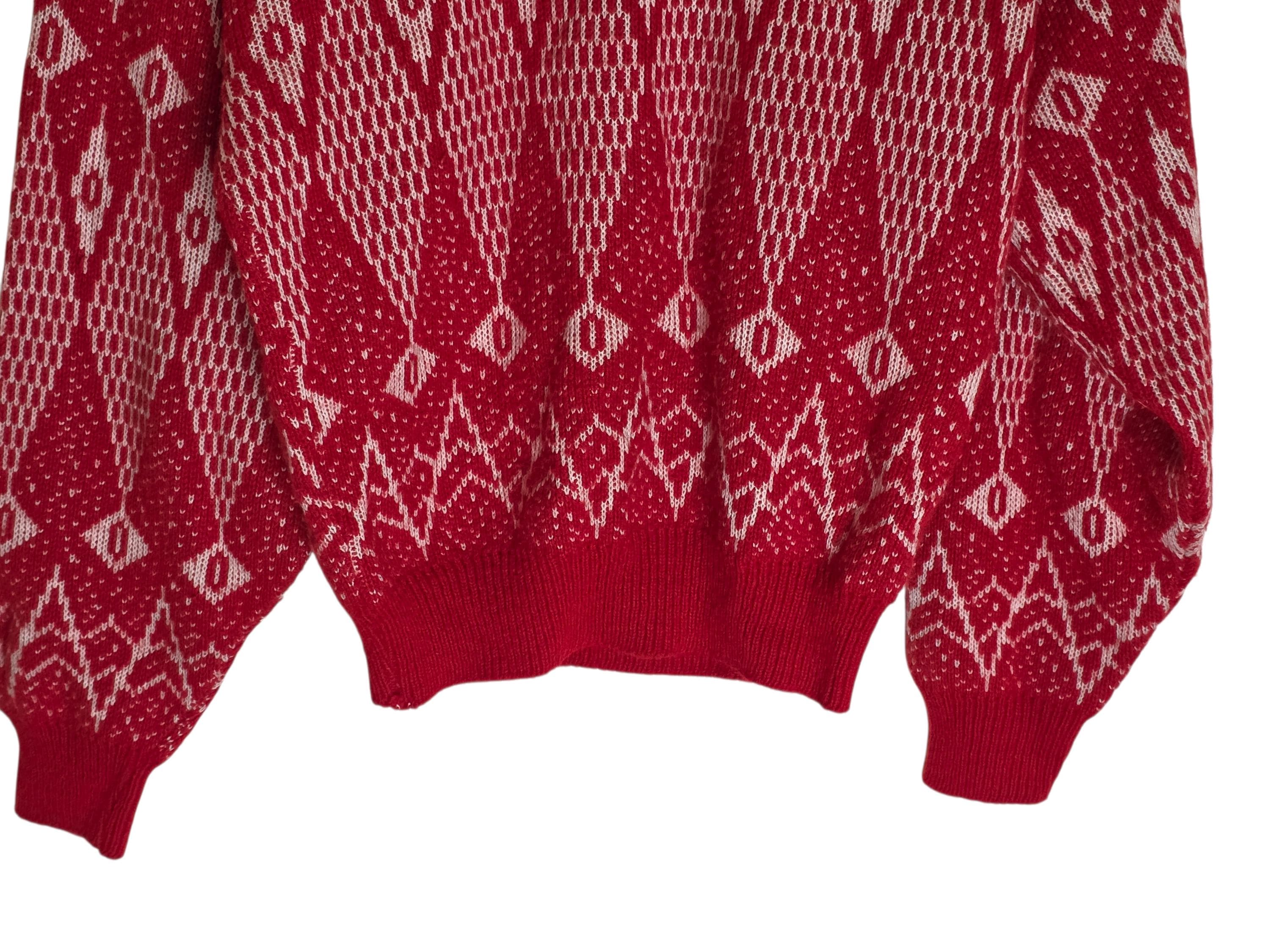 Vintage red and white geometric print sweater from the 80s-90s era.