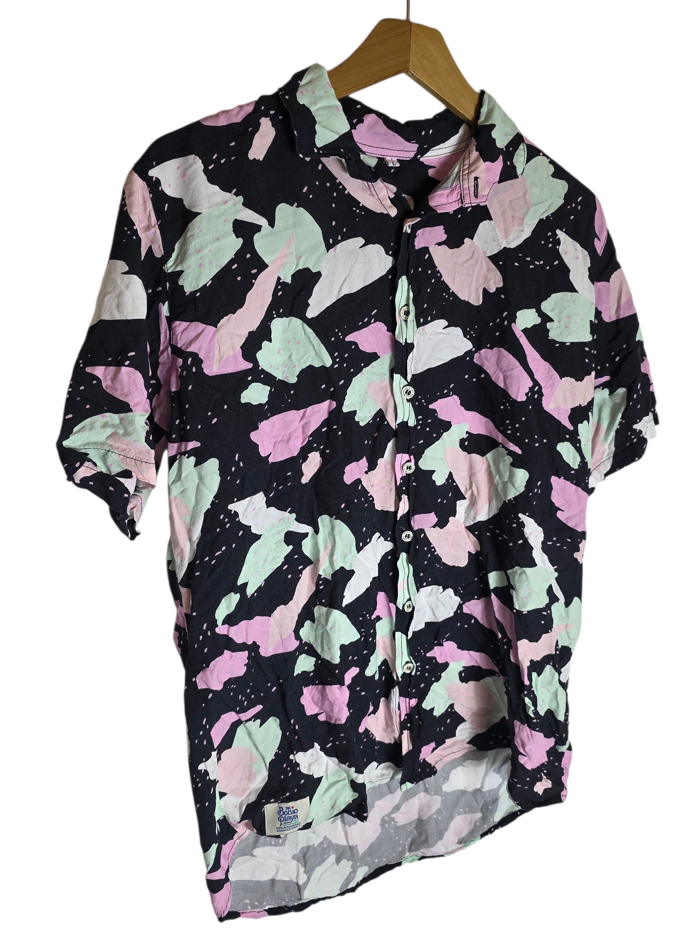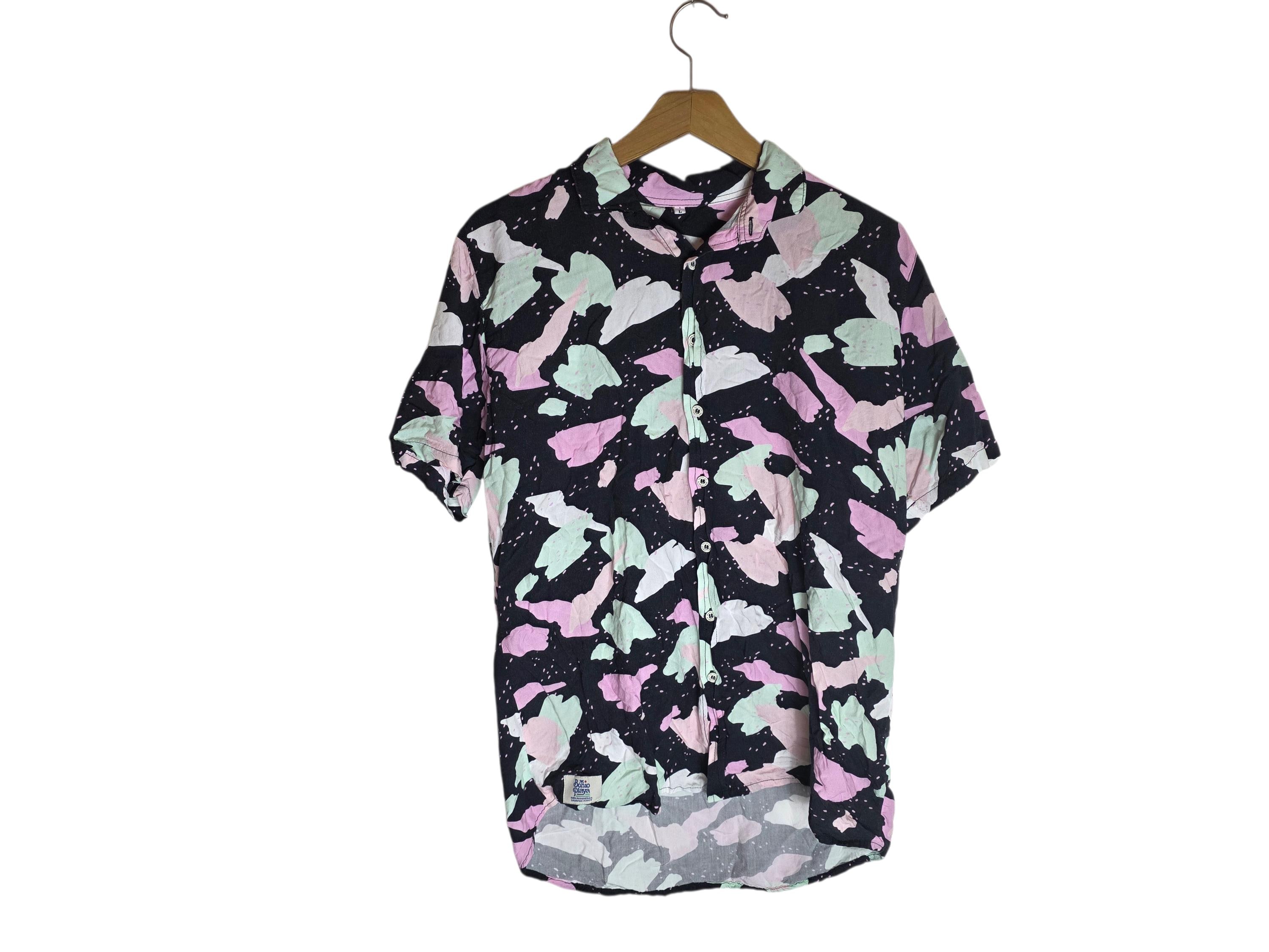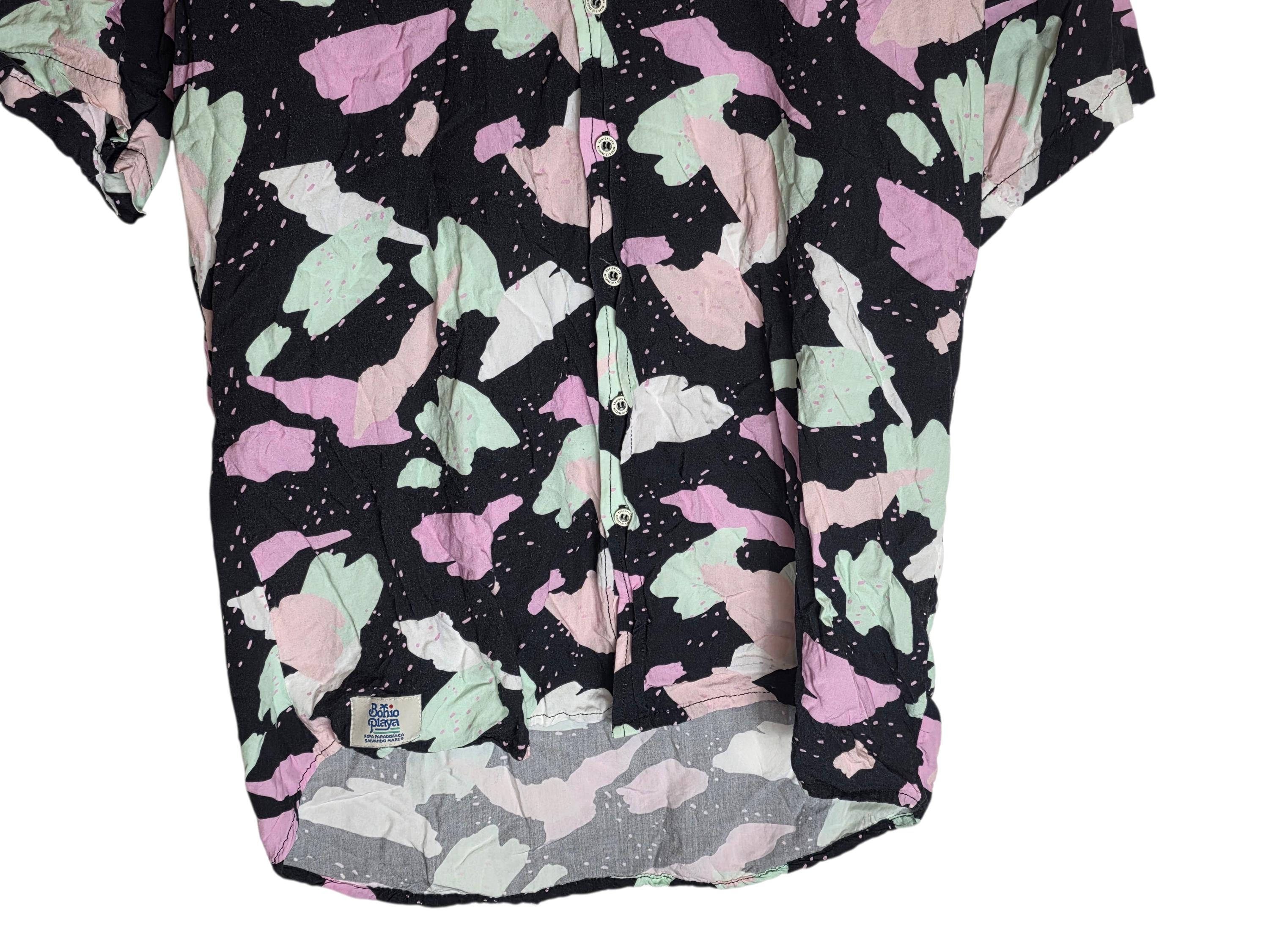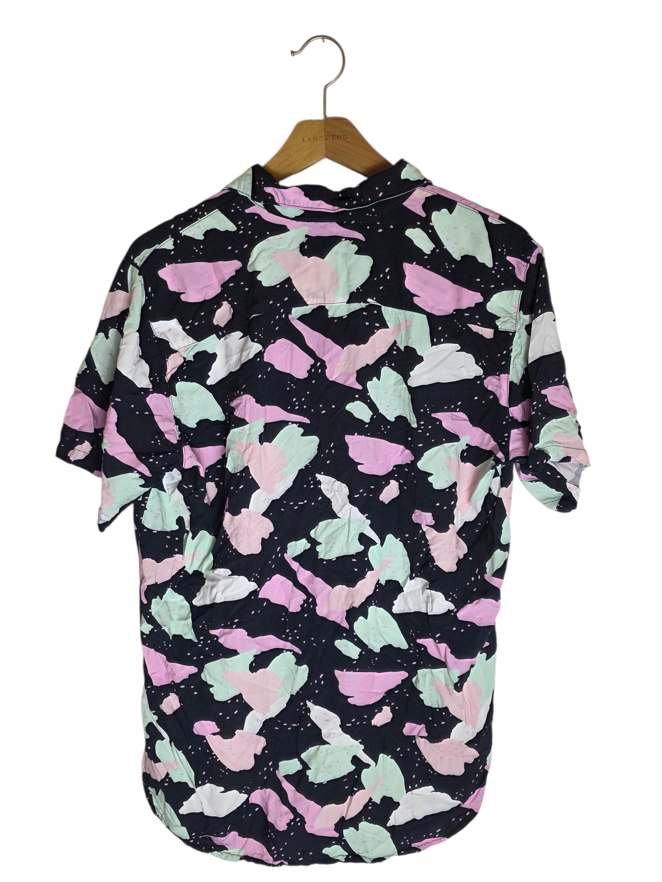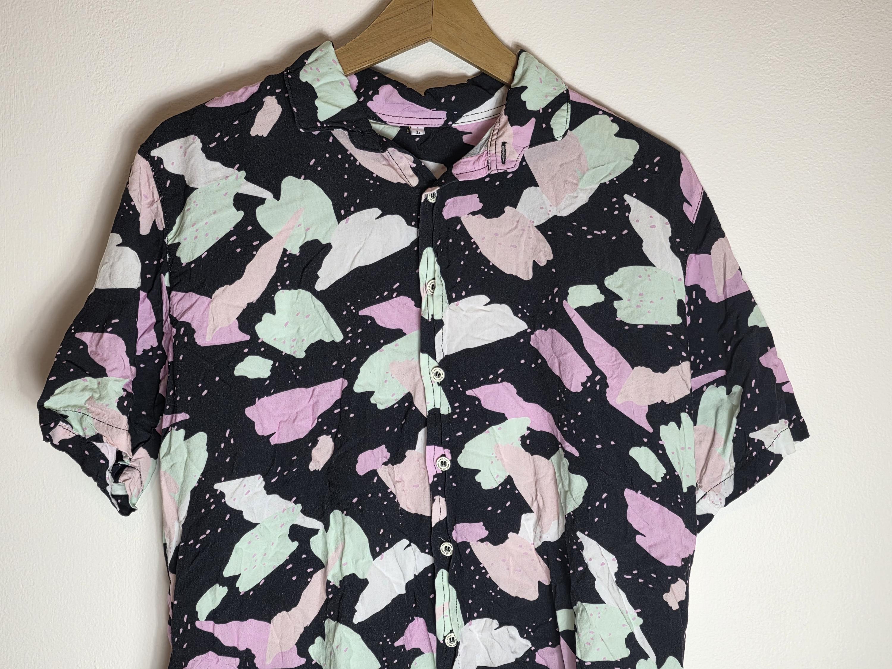 Abstract Pattern Pastels Black 90s Inspired Button Down Mens Collared Short Sleeve Hawaiian Shirt
